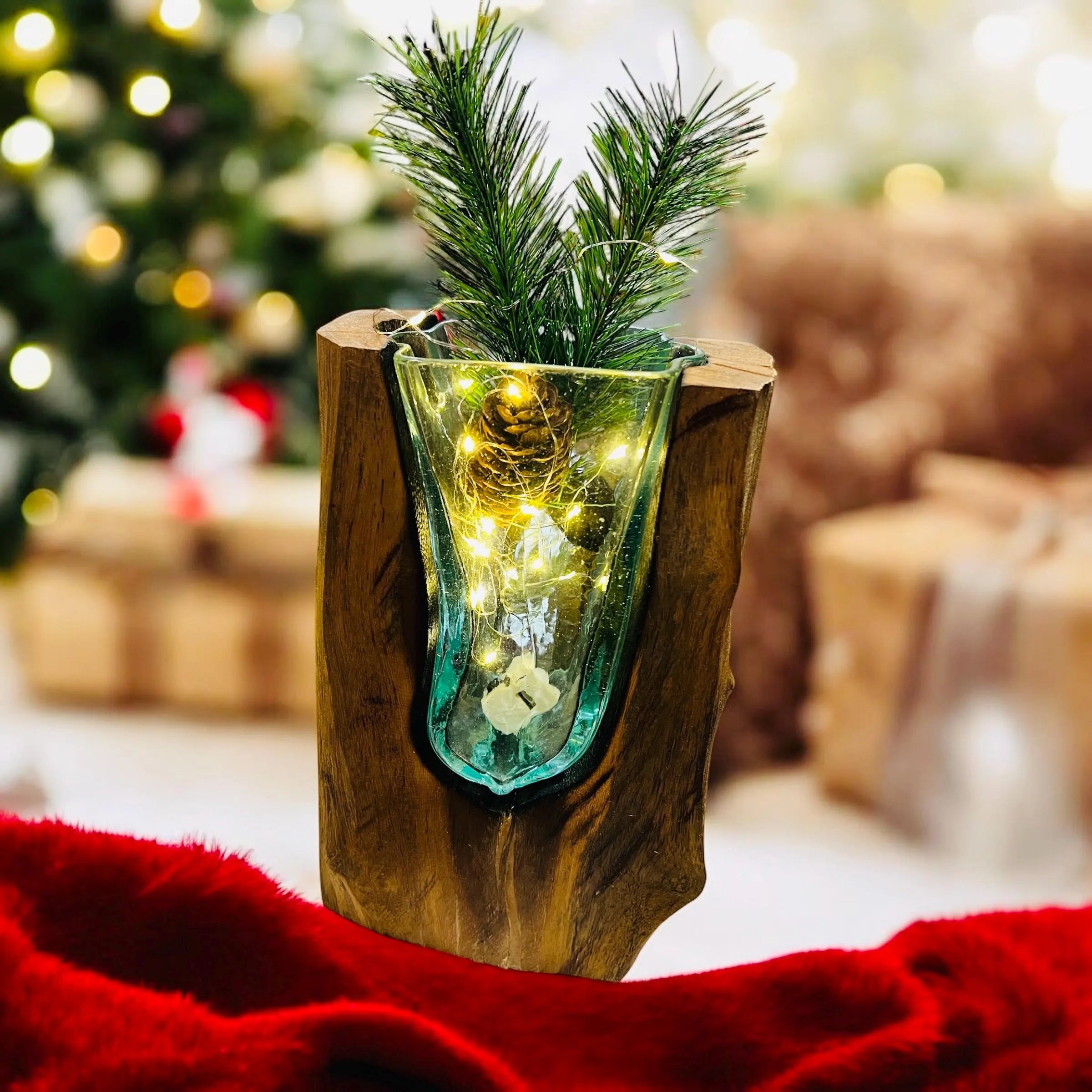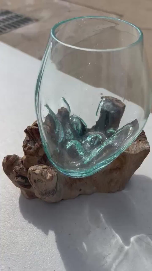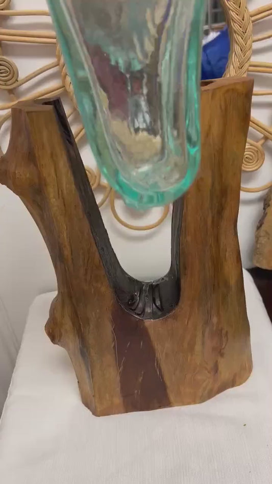 Handcrafted Melted Glass Vase on Teakwood – Natural Organic Home Décor Sculpture